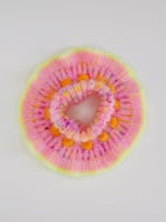 I’m always drawn to pink and orange hues. Together they become such a joyful color combination. To go all in I added a multi-colored neon yarn. You can’t help but smile when seeing this one.
