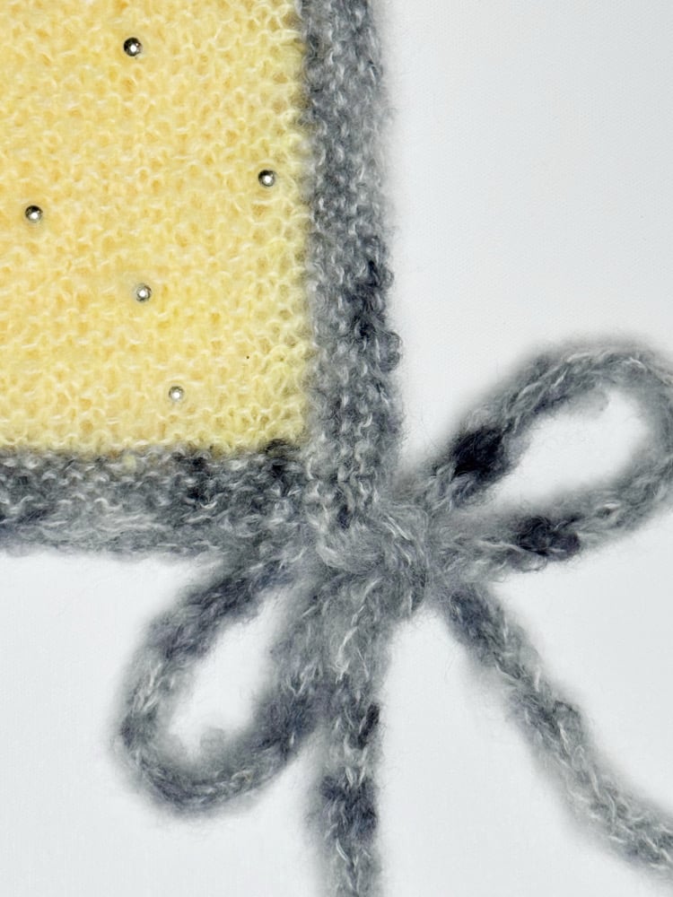 Mohair Bonnet in Butter Yellow & Marled Grey – Luxury Hand-Dyed Mohair Blend, Hand-Knitted With Beads.