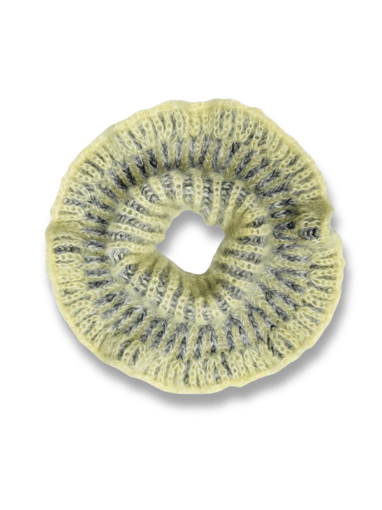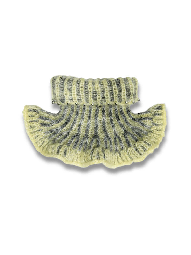 Mohair Collar in Butter Yellow & Marled Grey – Luxury Hand-Dyed Mohair Blend, Hand-Knitted With Beads.