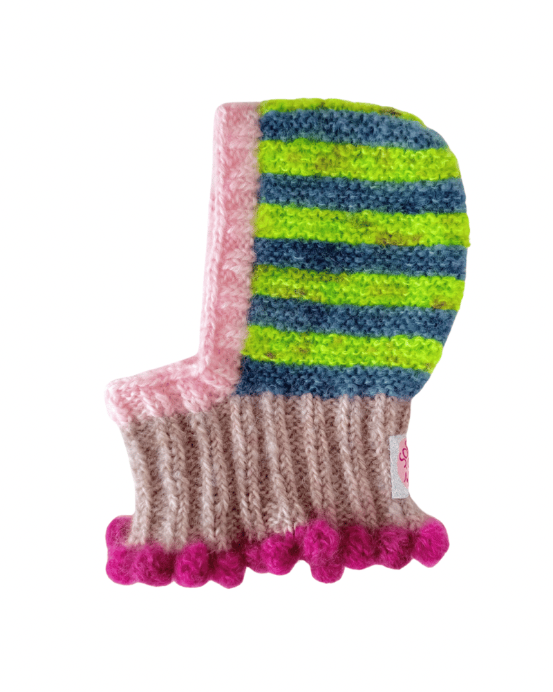 Sofie and Iris Striped Dark Navy, Neon Green, Light Brown, Light and Dark Pink Mohair Balaclava