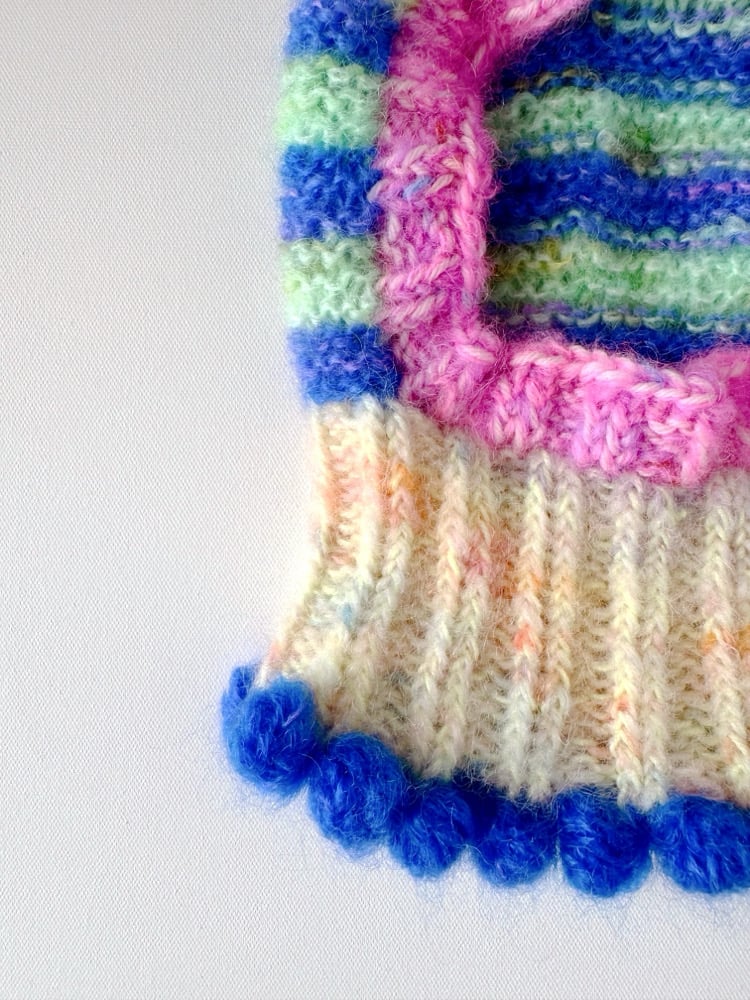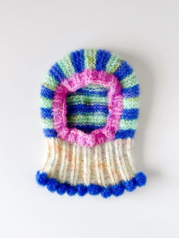 Discover the joy of wearable art with our exclusive Sofie and Iris handknitted balaclava. This piece is not just an accessory, but a true expression of creativity, color, and craftsmanship. Each balaclava is handmade with love, featuring bold color combinations and playful details. Perfect for those who seek individuality, no mass produced designs and a touch of magic in their wardrobe.