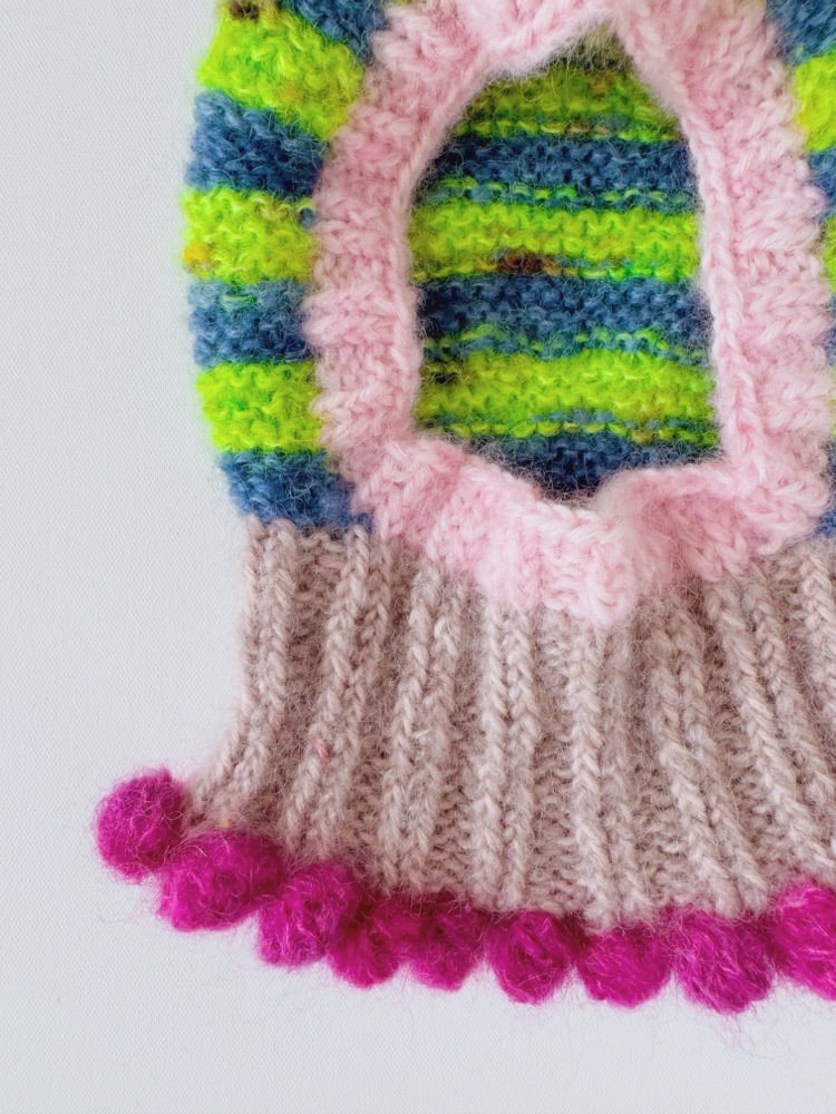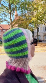 Soriano: Sofie and Iris Striped Navy, Neon Green, Light Brown, Light and Dark Pink Mohair Balaclava